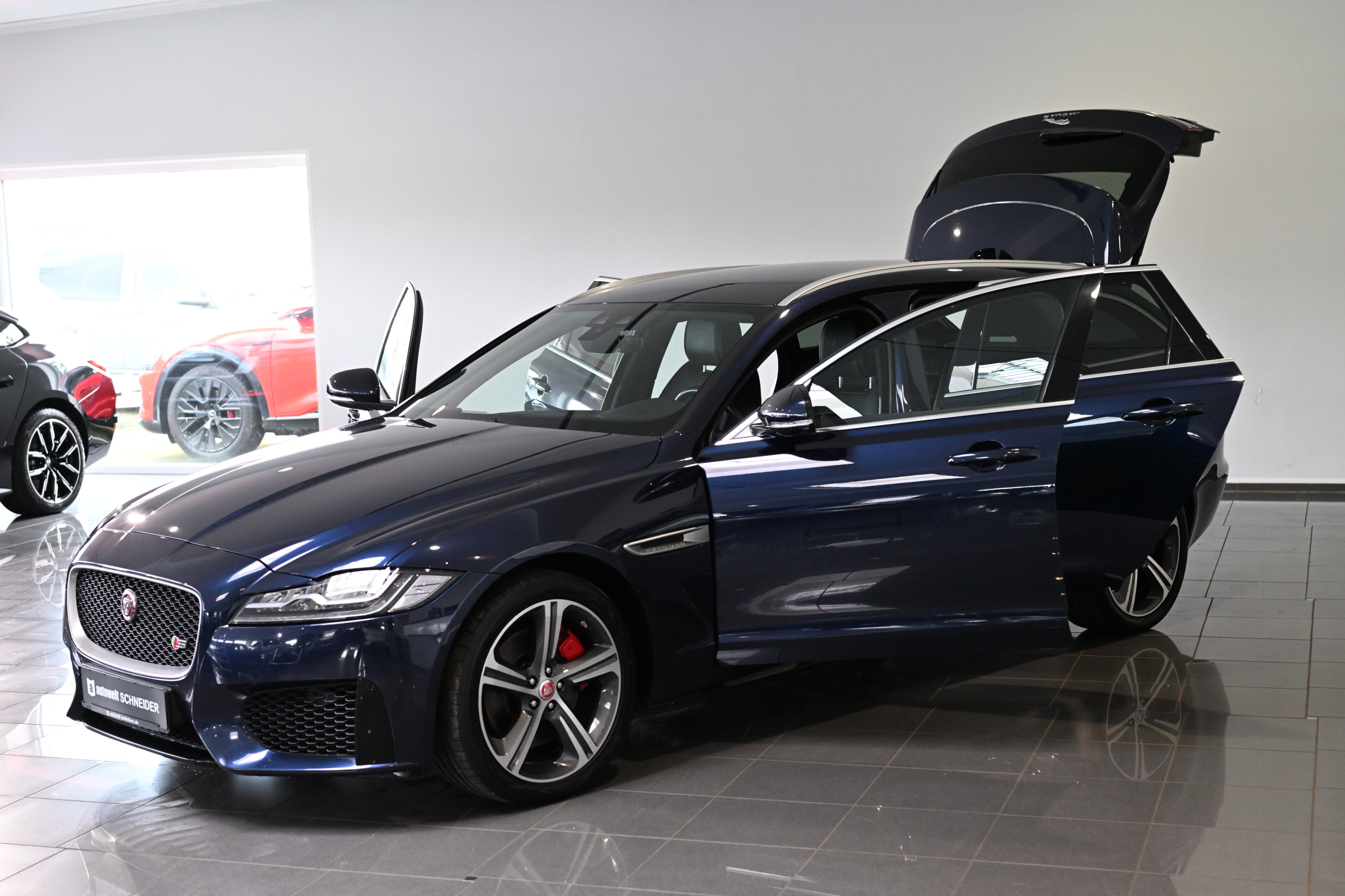 - Einstiegsblenden (Edelstahl) beleuchtet, mit Schriftzug Jaguar